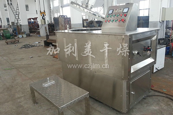 粉體物料與粘合劑在圓筒形容器中由底部混合漿充分混合成濕潤(rùn)軟材,然后由側(cè)置的高速粉碎槳切割成均勻的濕顆粒。